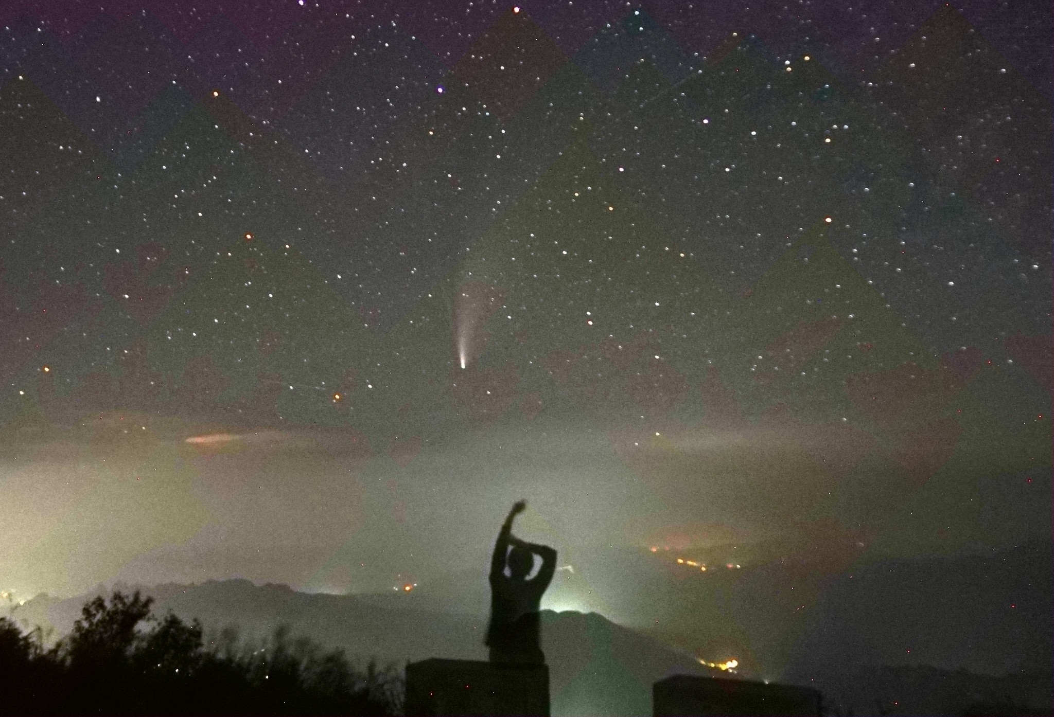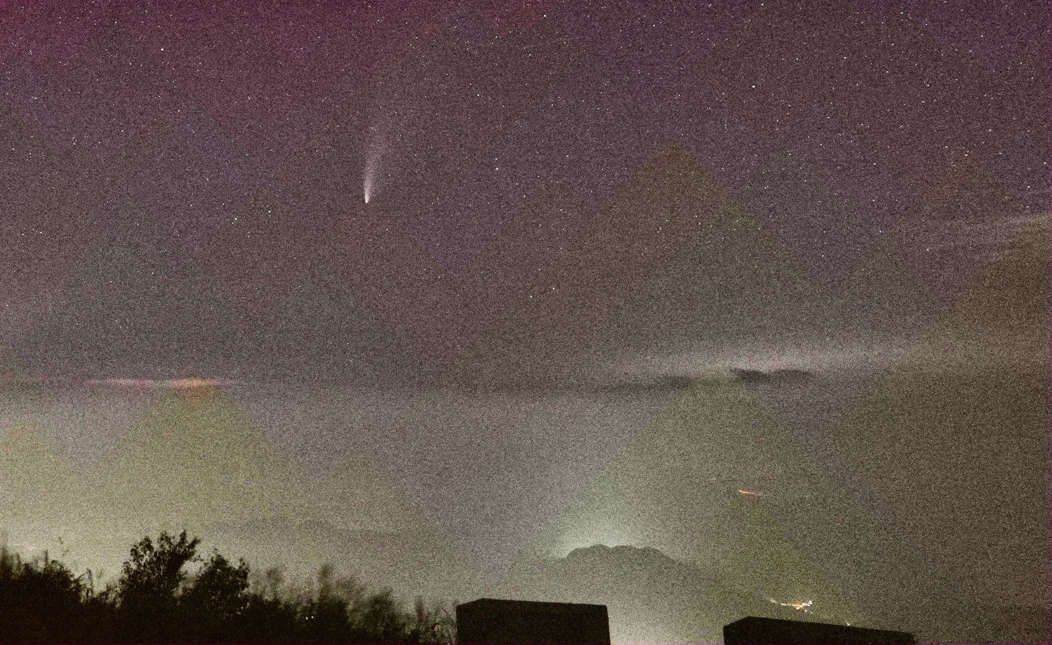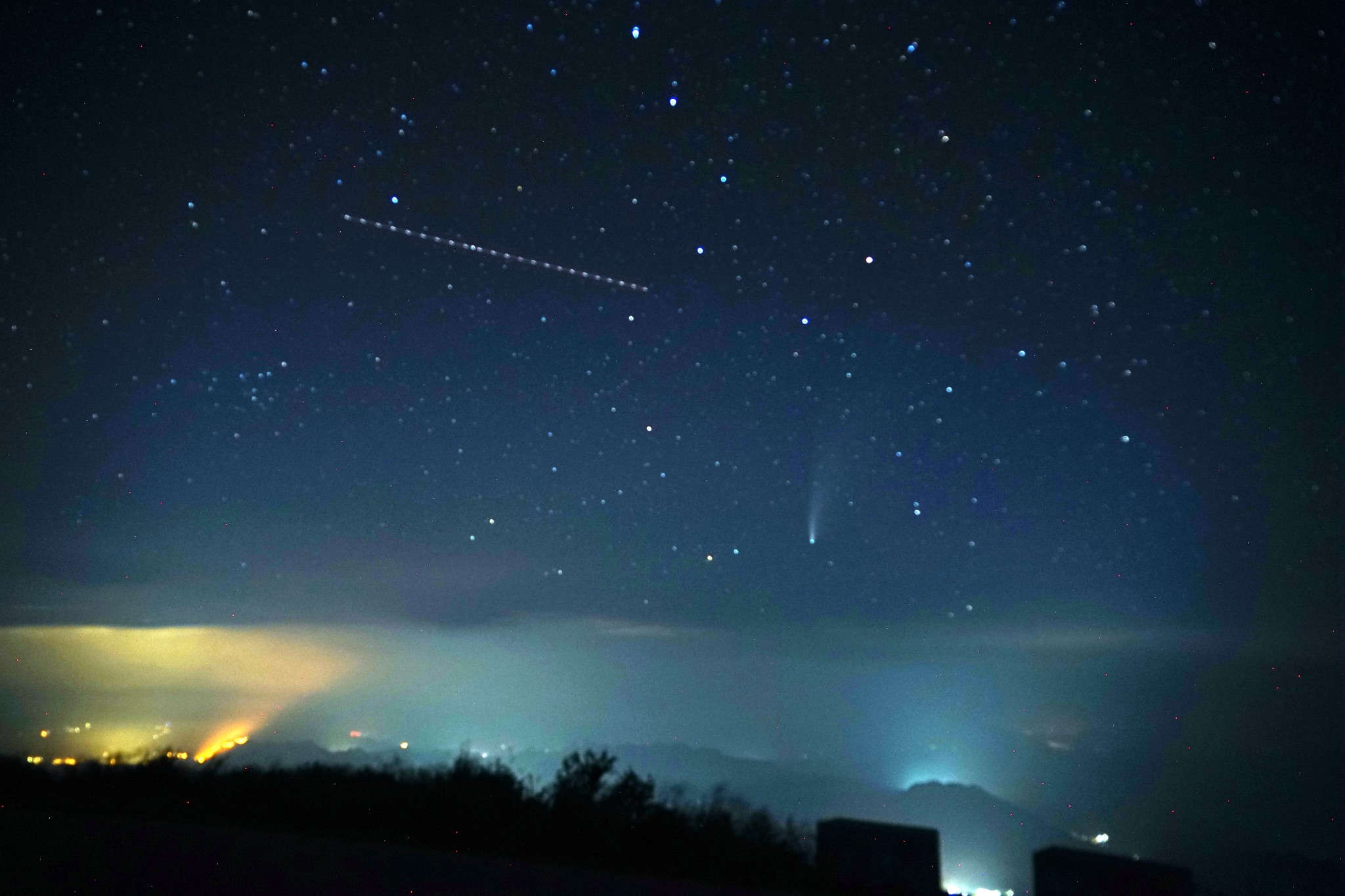 这颗彗星的名字是C/2020 F3 NEOWISE。它是一颗非周期彗星,是今年3月27日被发现的。这是人类第一次看到这颗彗星,下一次看到它的时候,时间将过去七千年!