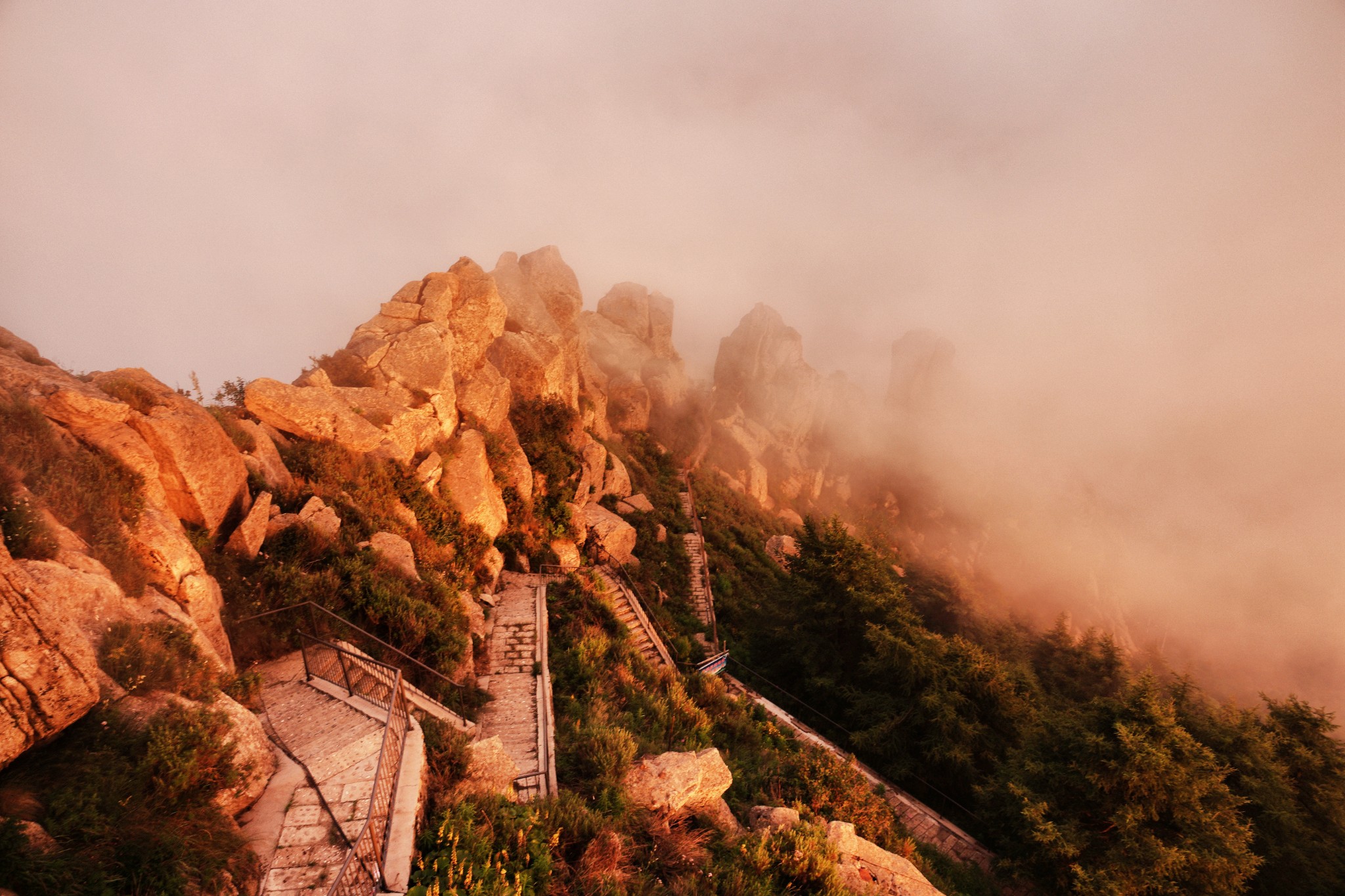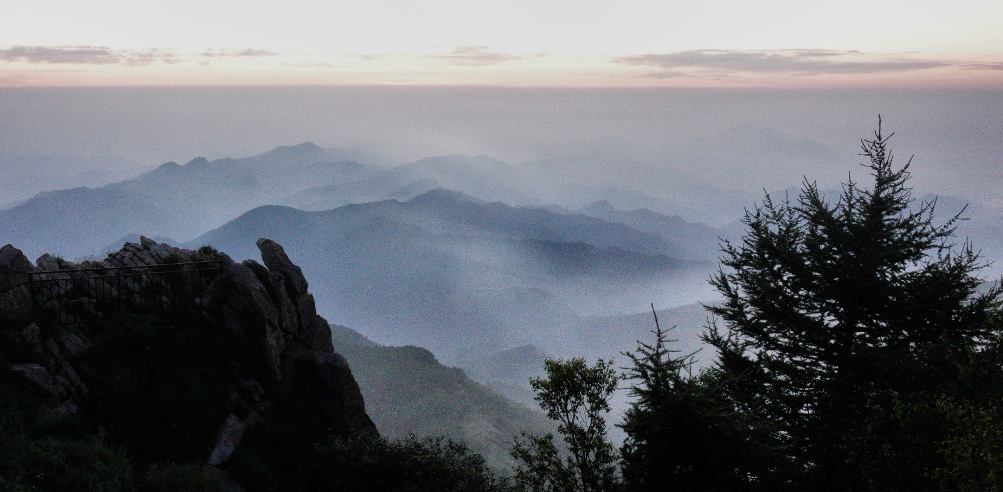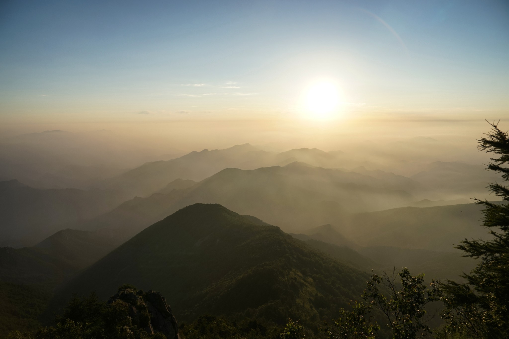 雾灵山森林公园清晨四点来钟爬起来上山顶去看日出