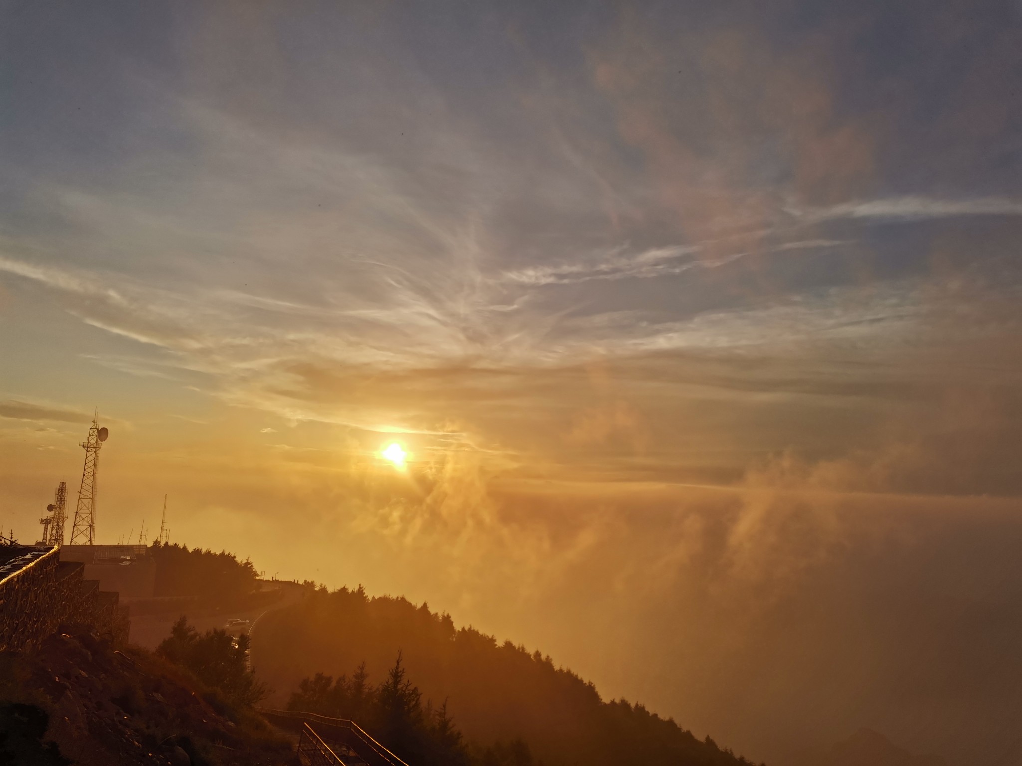 雾灵山森林公园中午到达莲花池服务区,看到日晕。