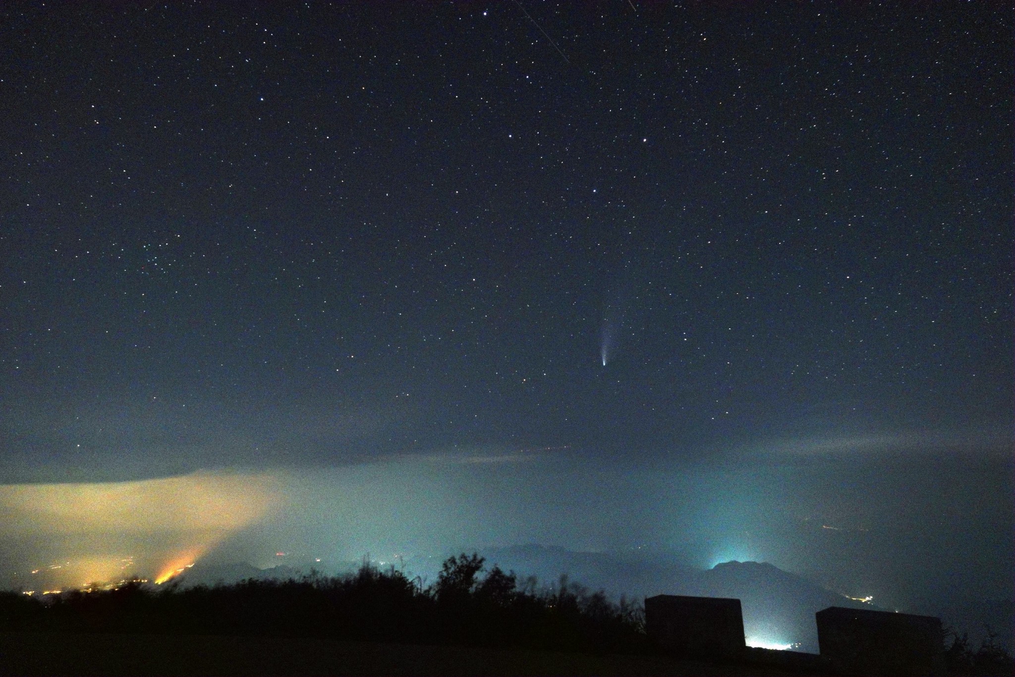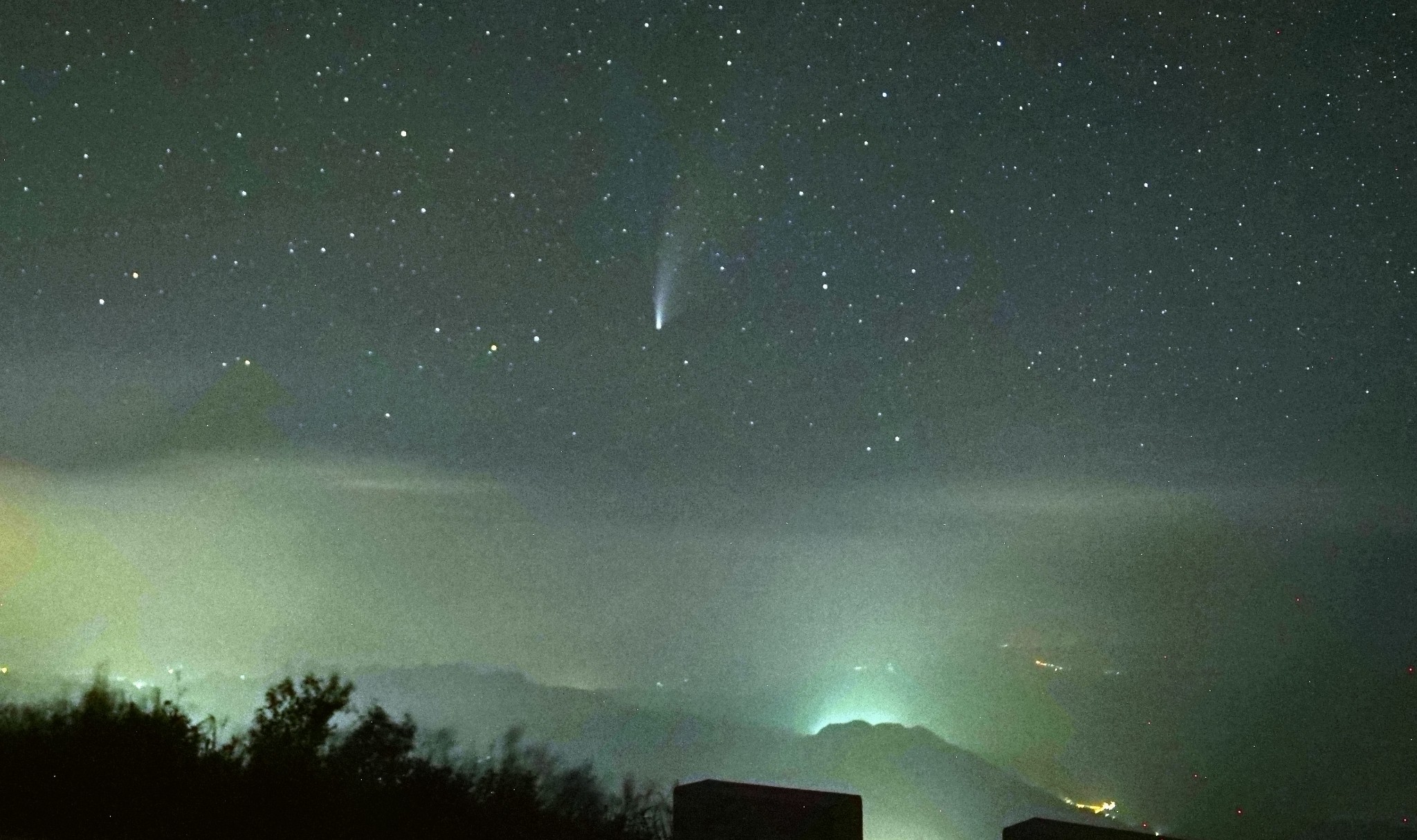 雾灵山森林公园落日后回酒店休息,九点多再次到山顶看彗星