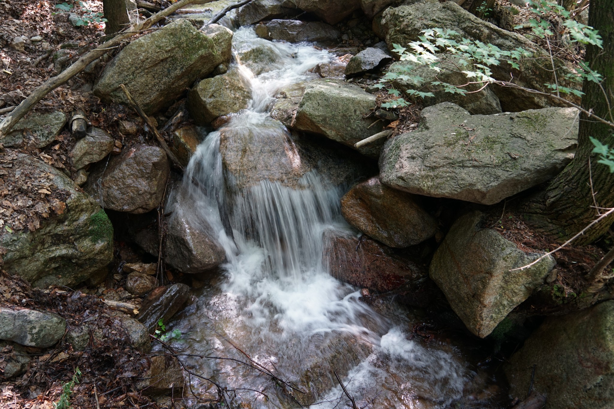 雾灵山森林公园由于不准备从西门离开,我们还需要从原路返回去乘缆车,因此到达小 壶口瀑布 后我们就折返了。