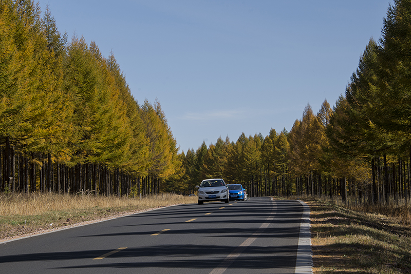 塞罕坝国家森林公园路边的风景很美,走走停停
