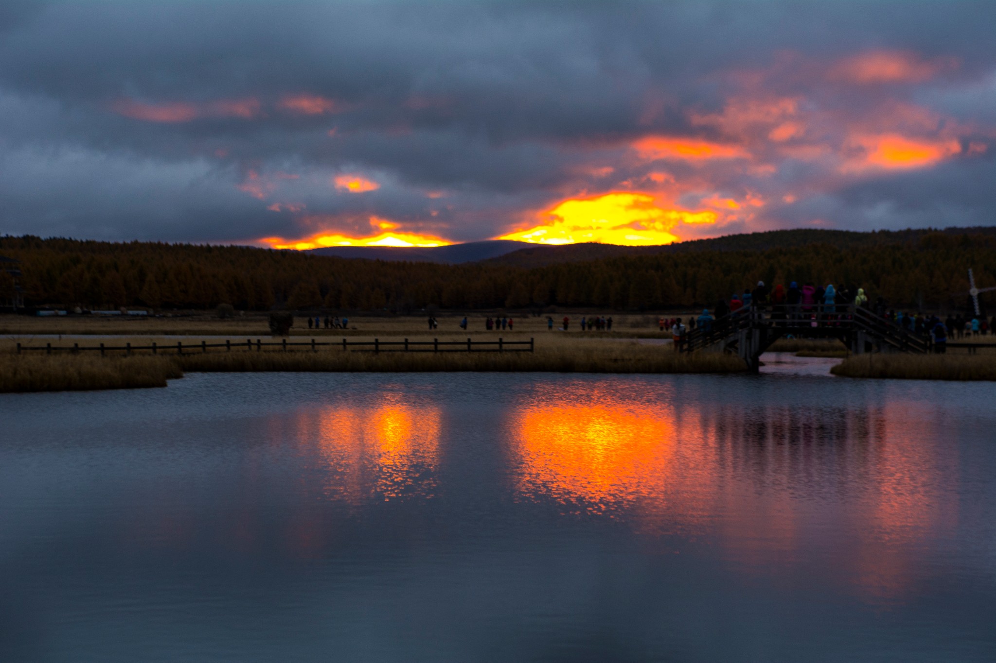 塞罕坝国家森林公园第二天一早儿来到七星湖看日出,天气不给力