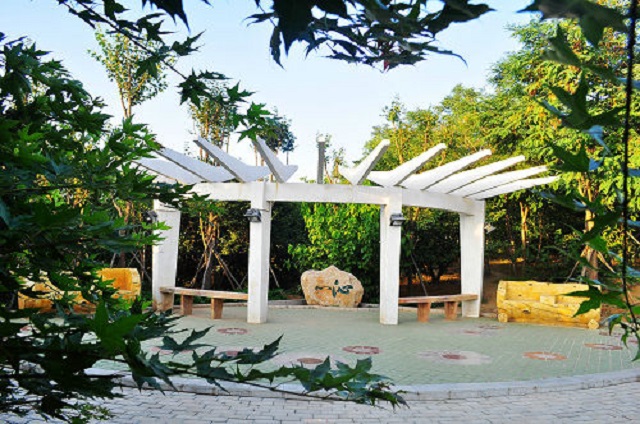 构筑了契丹文化一条街、山门广场、耶律阿保机像、就日馆、玉珠苍穹、邀月、梨花春雨、烈士陵园、苏颂碑林、栈桥、辽塔、秀樾七彩、沁心、云影天光、真水无香、蝶影等17处景观点缀其中,将厚重的历史文化与自然景观和谐统一在一起。