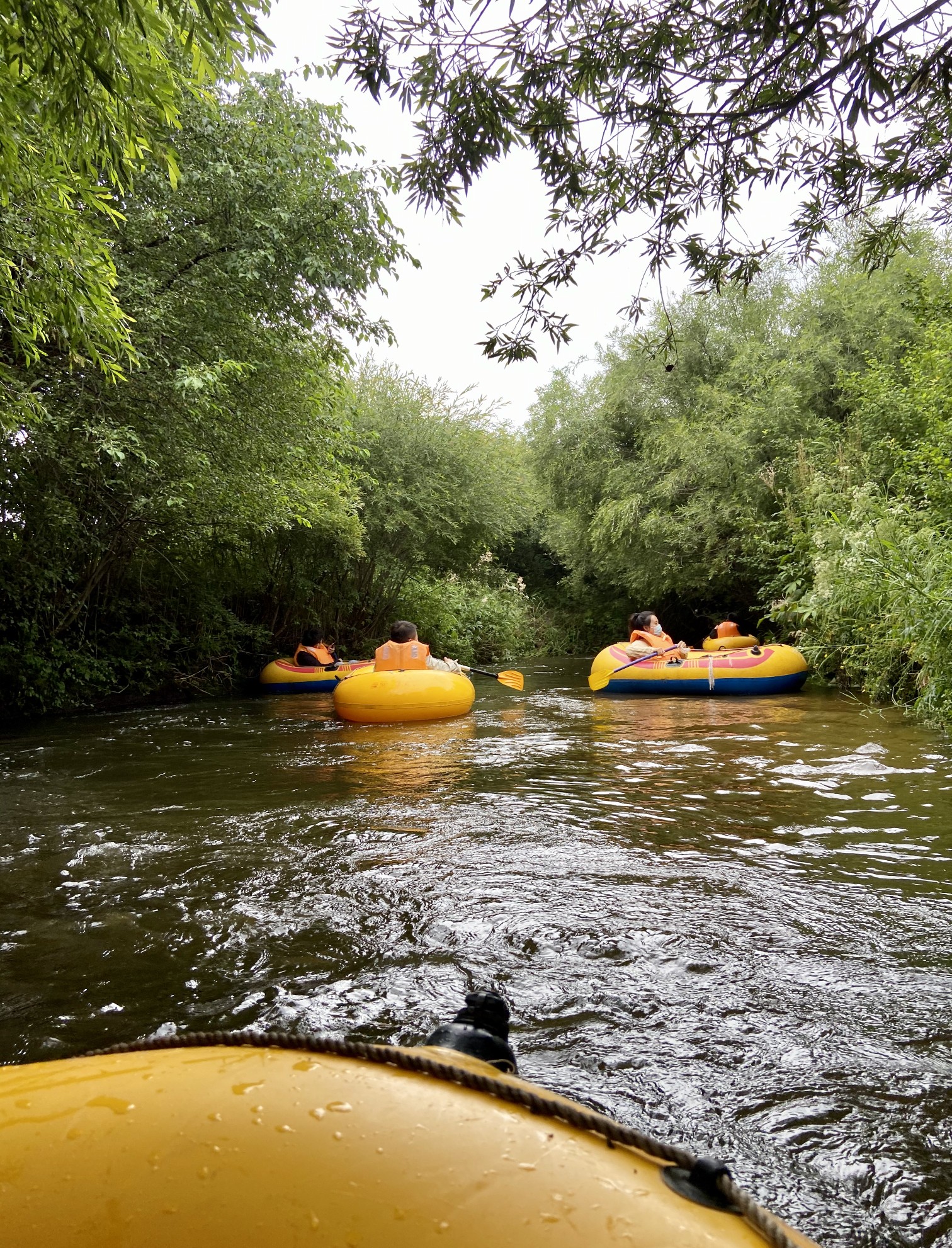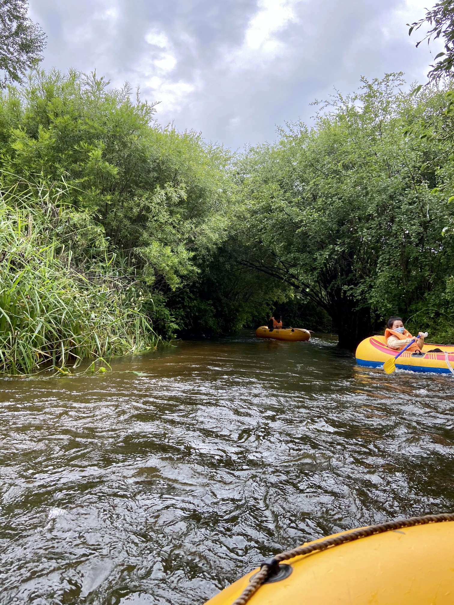 上午冒着雨体验滦河漂流,这段属于滦河支流,大概3公里左右,不到半小时就可以漂完。