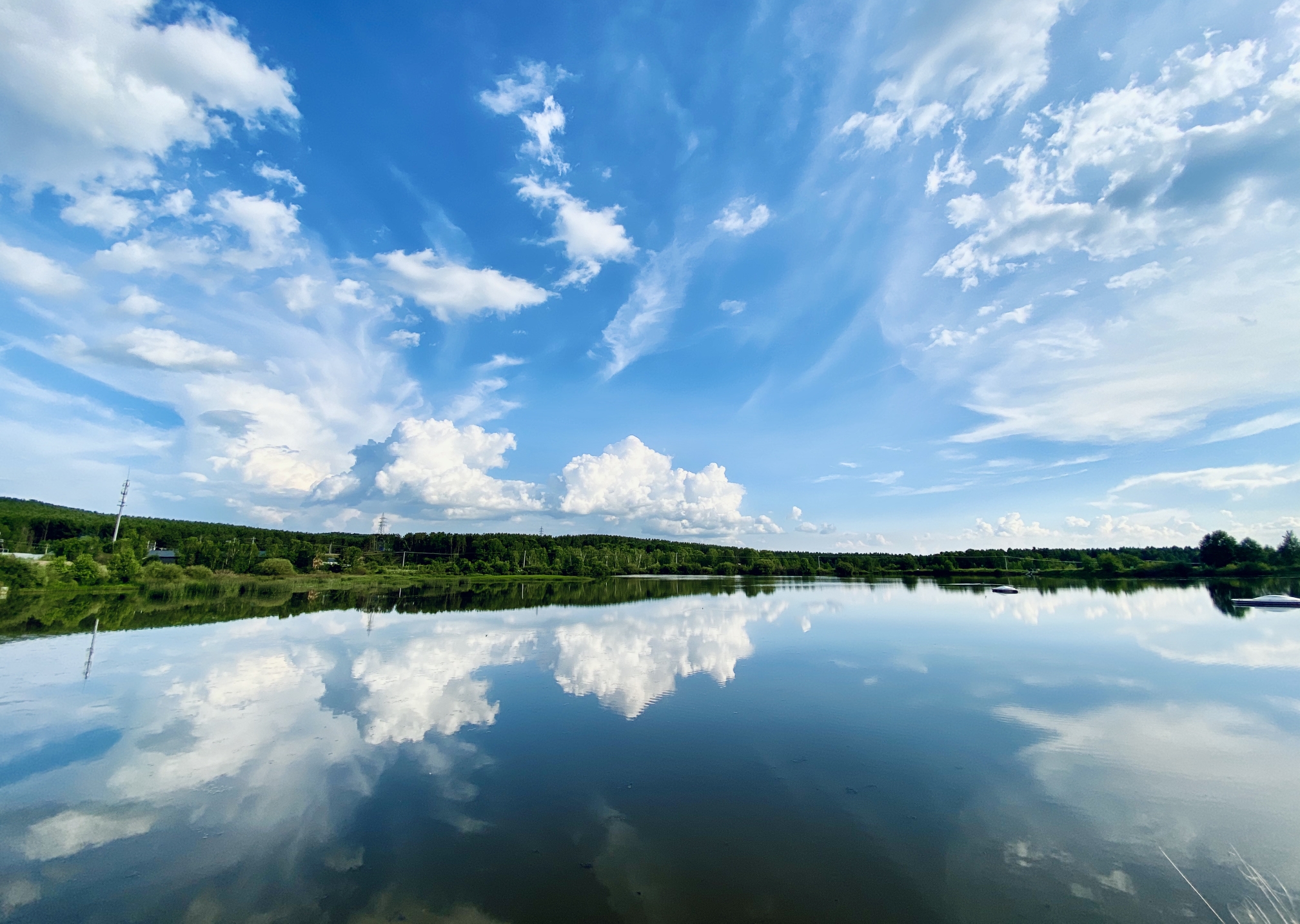 酒店附近的一个湖泊,在蓝天白云下像一面镜子一样,心情豁然开朗。
