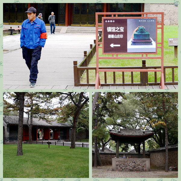 过丽正门后,来到第二重院落。正房是宫门,还要在此再捡一次票。东厢房是工作人员办公场所,西厢房是原博物馆售票处。过去,博物馆是单独售票,现在博物馆门票与山庄门票绑定,美名其曰“博物馆免费”。但是博物馆只能进一次,且只能在这个宫门进。这个院落有道路通向德汇门,可以先玩山庄然后再来博物馆。