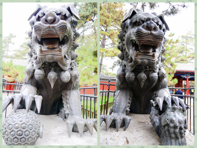 门前两侧各有一个铜狮,威风凛凛。这对铜狮成了人们心目中的吉祥物。如果大家想万事如意的话,别忘了摸摸它。
