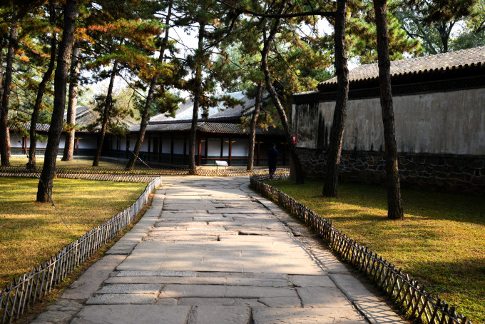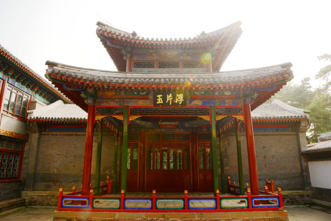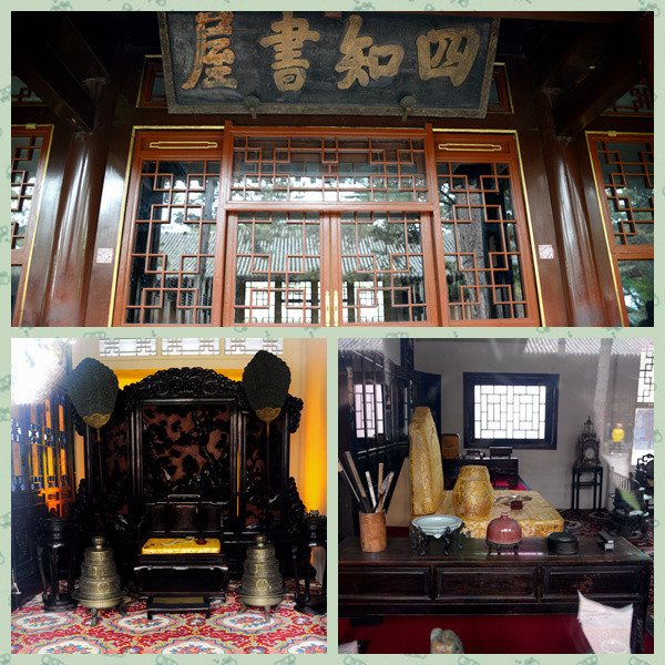 转过回廊来到第五重院落,正房大殿叫四知书屋,五楹。清圣祖题名“依清旷”,清高宗晚年又增题“四知书屋”。此处为皇帝在山庄时日常处理政务、召见大臣之处。是避暑山庄的勤政殿。