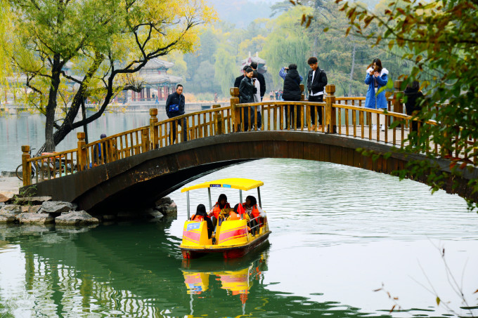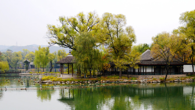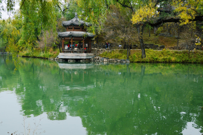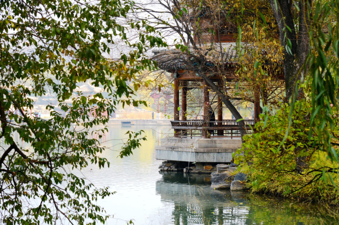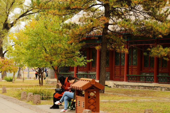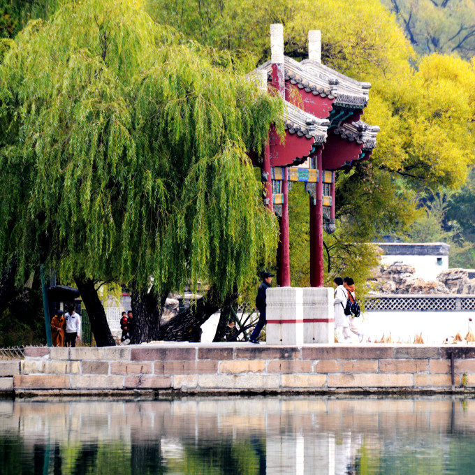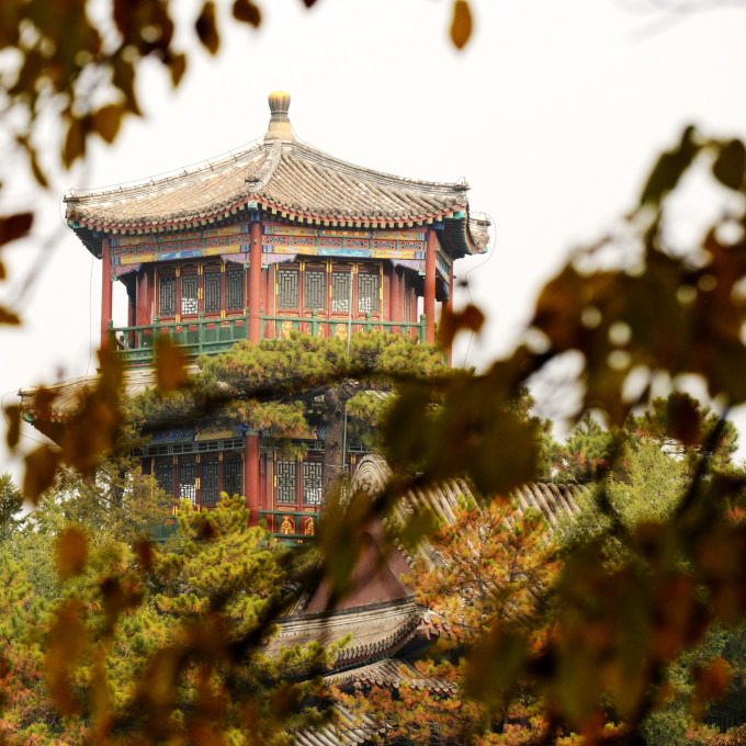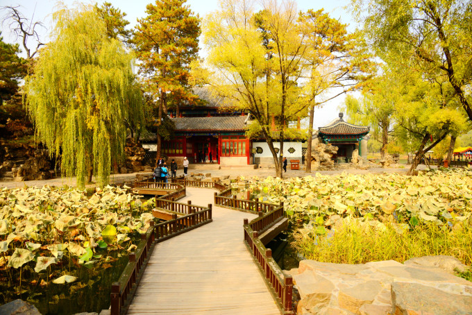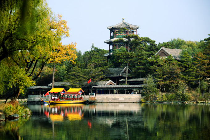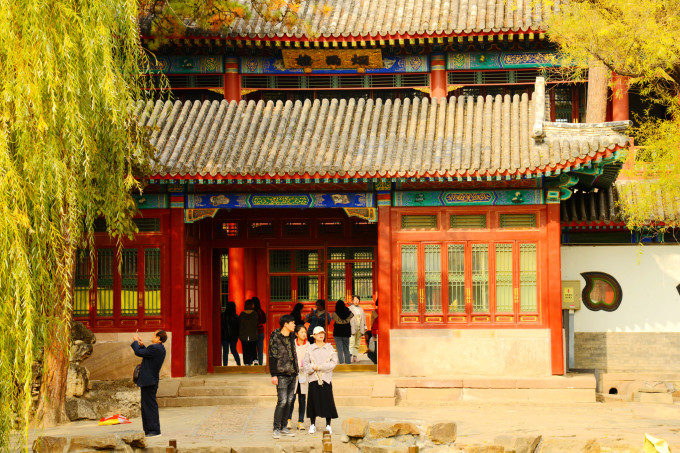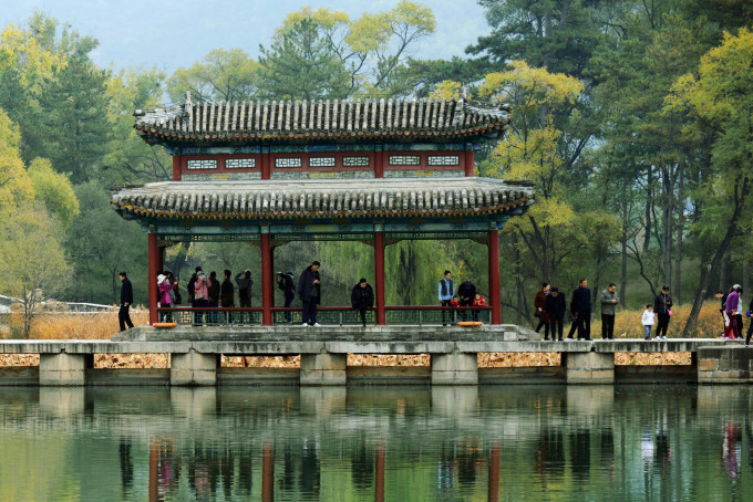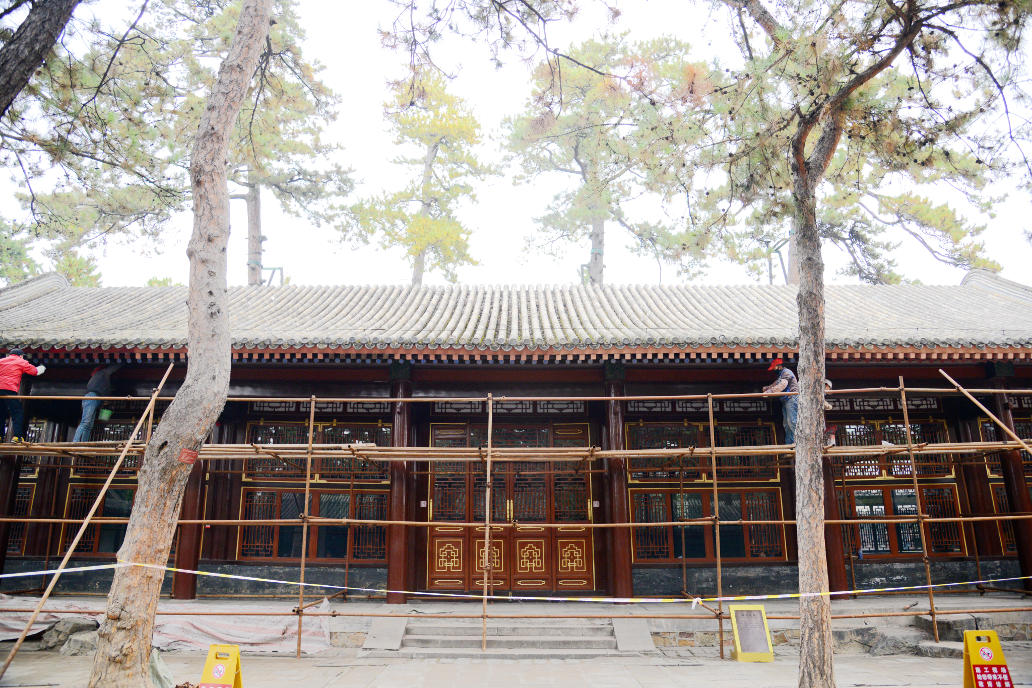 烟波致爽殿正在施工维护,不得近前观看。