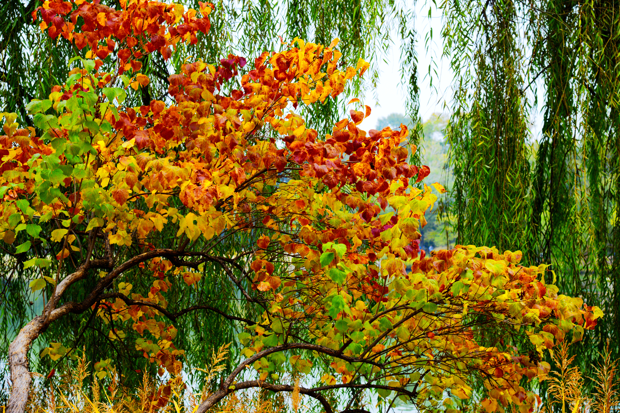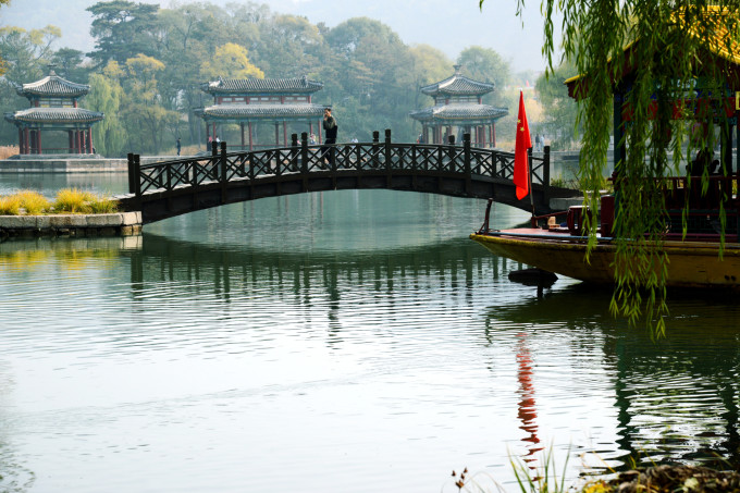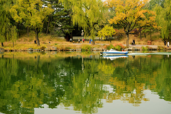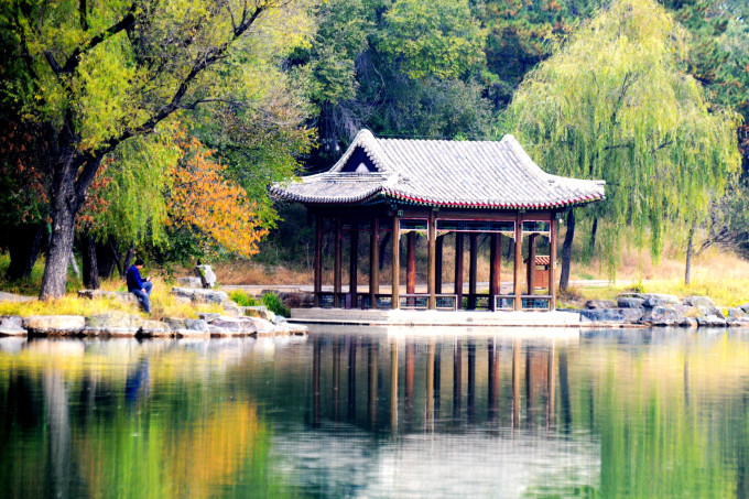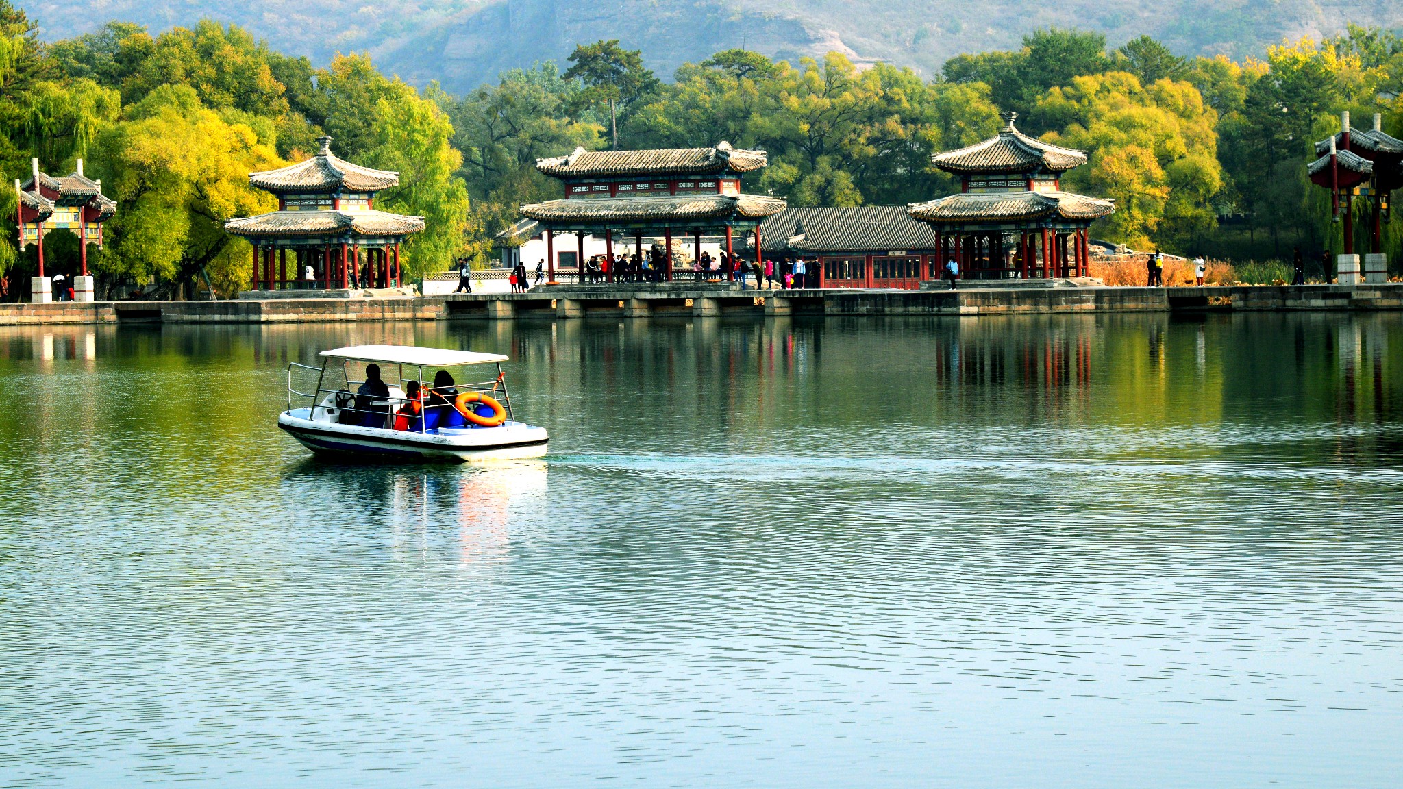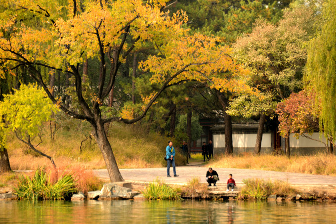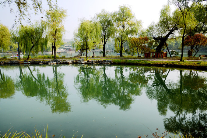 如果不想去山区景点,则右转去水心榭。建议:上午逆时针游览(拍照是顺光),下午则直行顺时针游览。