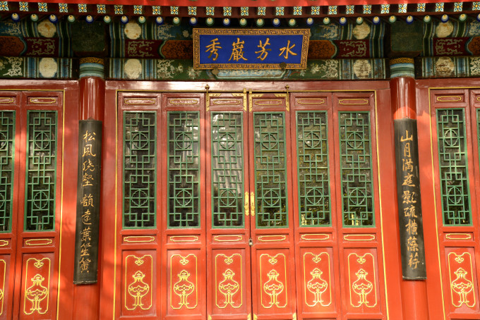出云山胜地往北即为正宫的后门,叫岫云门,又名垂花门,云山胜地与岫云门之间小 院内并无其他建筑,此门的建造是出于庭院建筑完整的需要,为皇家九重院落凑数。