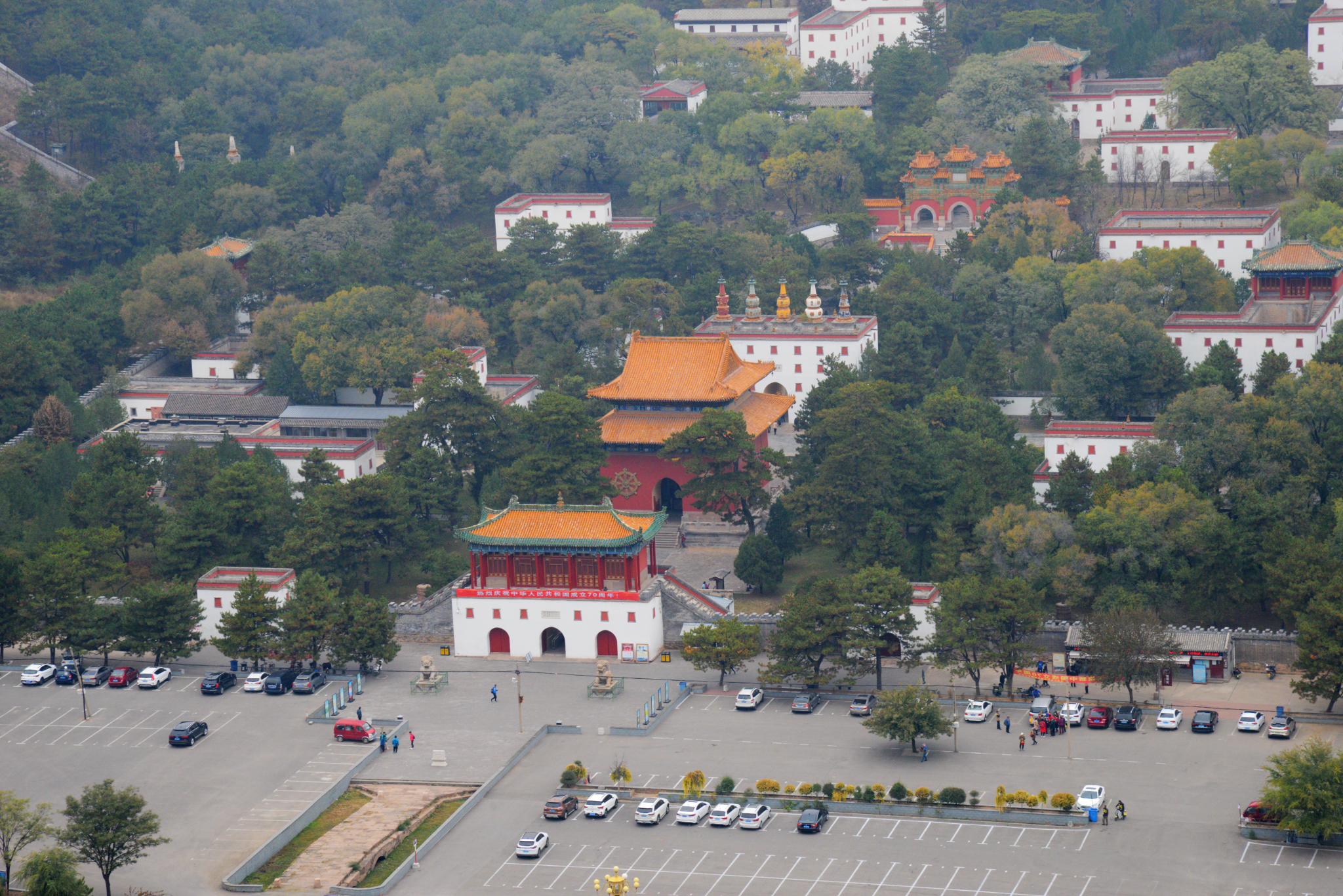 在城墙上眺望普陀宗乘之庙(小布达拉宫)。普陀宗乘之庙为 承德 外八庙中规模最宏大者。建于乾隆三十六年(1771年),是乾隆为了庆祝他本人60寿辰和他母亲皇太后80寿辰而建的。依山就势,布局自然,富于变化,基本是藏传佛教的建筑风格。