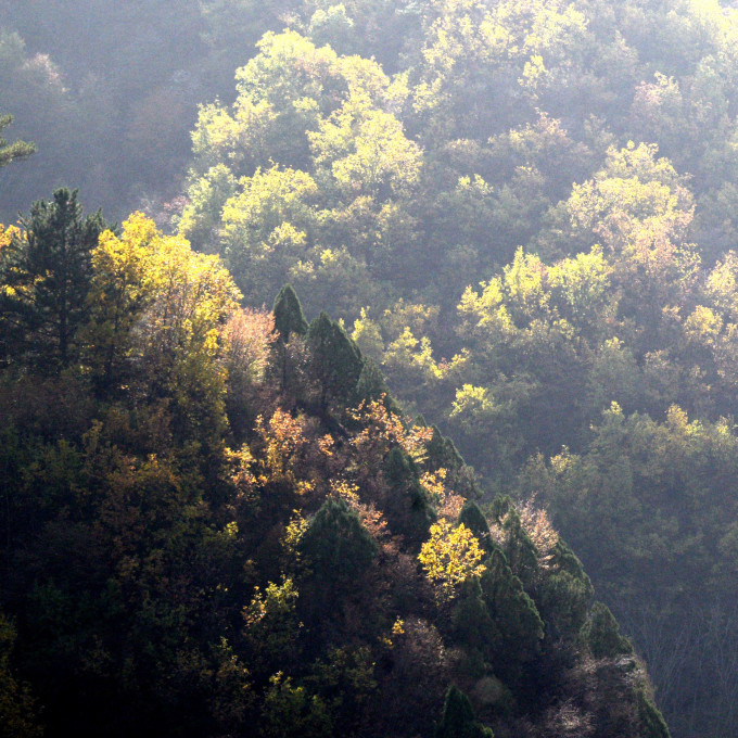 二马道的宫墙雄踞山地最高处,在这里登临其上,可俯瞰外八庙,向东可邀望棒槌山,蛤蟆石,武烈河水,向南望,远处是 承德 市区,近处森林 中山 庄若隐若现,西面则是层峦叠嶂,蔓延不断的山峦。这里是总揽山庄内外风光的绝佳之处。
