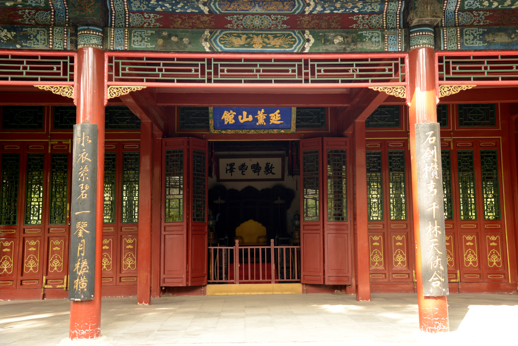 第四重院落主殿澹泊敬诚殿是不能开中门的。所以第四重院落与第五院落是用回廊连接。