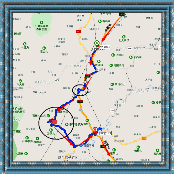 先走G95在安匠出口出高速,走112国道,在李家营 上高 速。(注意路标)
