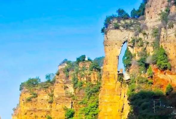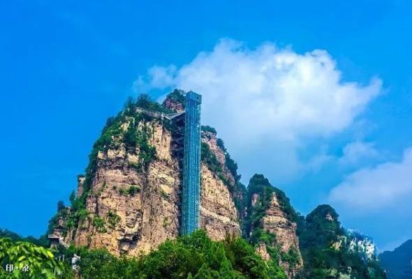 游客中心→好汉坡→将相迎客→悬空餐厅→236米玻璃桥→四方洞→会鹊桥→天街美食街→自动扶梯→百米电梯→好汉坡→游客中心