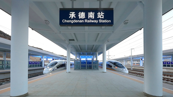 承德南站为京哈高铁新建中间站,2018年10月25日,承德南站正式开始联调联试,2018年10月27日,首辆动车驶入承德南站,2018年12月29日,承德南站正式开通运营。